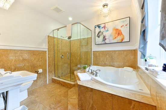 Bathroom Size: 96 sq.ft. / 8.91 sq.m with walk-in shower & jacuzzi style soaker tub